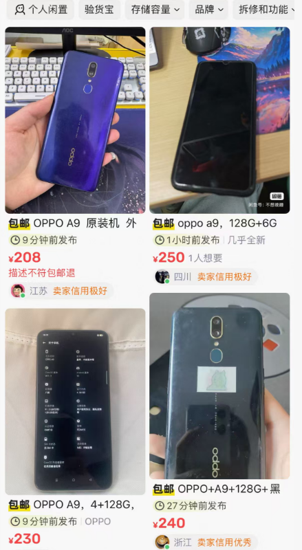 OPPO A9从80元的回收价涨到200元。