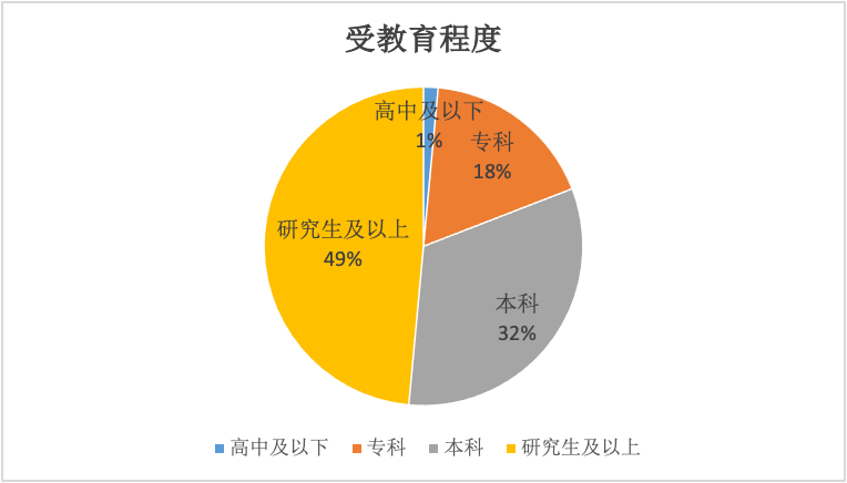 受访专家的文化程度大部分集中在本科以上,尤其是研究生及以上学历占49%,本科学历占32%。