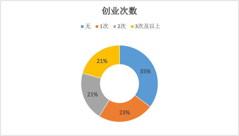 23%的创业者在此之前有过一次创业经历,有过两次创业的创业者21%,三次及以上的创业者占21%,没有过创业经历的占35%。