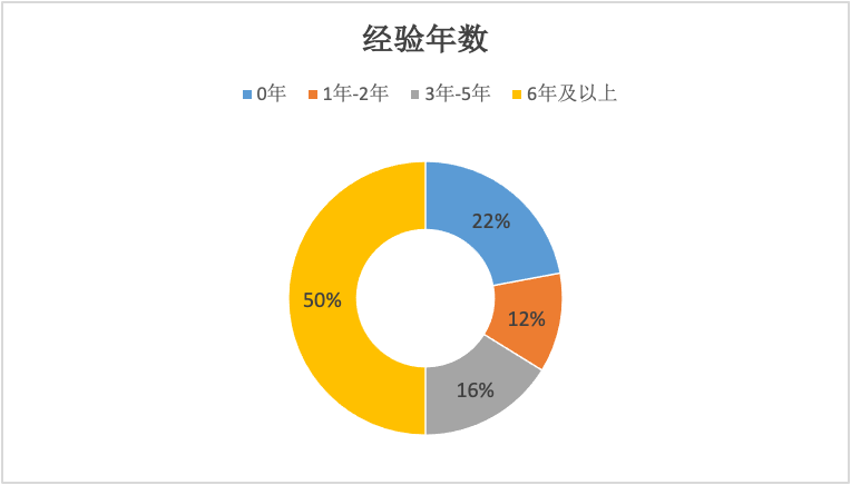 创业者创业前与文旅相关工作的年数为6年及以上的人数最多,占到50%,之前没有文旅相关工作经验的占22%,工作经验3年-5年的占16%,工作经验在1年到2年的占12%。