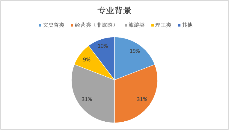 创新创业企业的创始人学科背景分布较集中,其中经管类(非旅游)背景较多,占31%,旅游类占31%,文史哲学类占19%,理工类占9%。