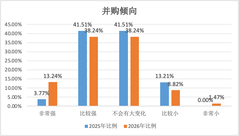 图8 2025年与2026年大型文旅集团收购中小文旅双创企业的倾向对比