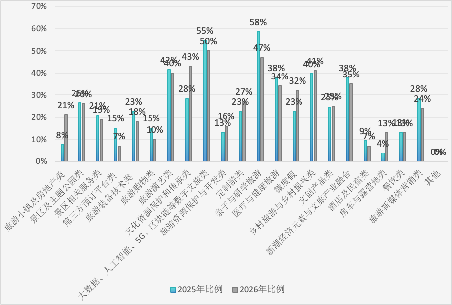 图2 2025年与2026年文旅双创业态与产品集中领域的预期分析对此