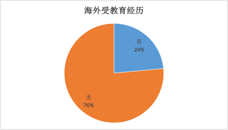 受访专家中有76%无海外学习或工作的经历,占到一半以上,有海外学习或工作经历的则占24%。