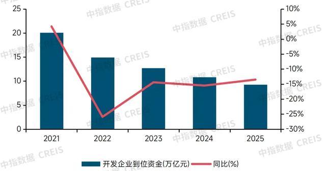 图2:2021-2025年房地产开发企业到位资金规模变化