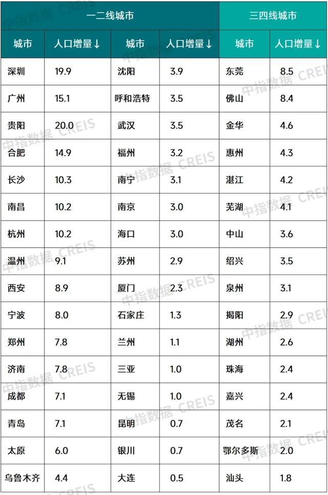 表4:2024年中国人口增长重点城市