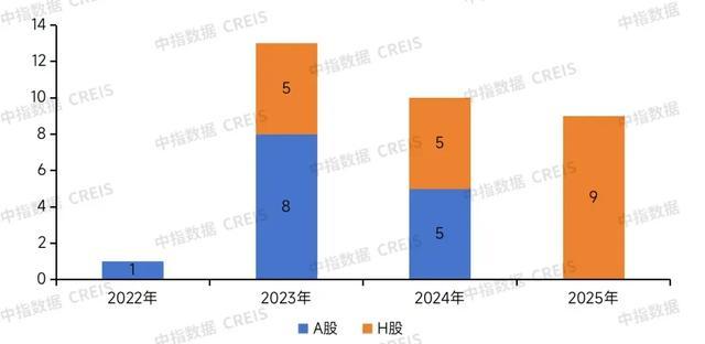 图7:2022-2025年上市房企退市数量(个)