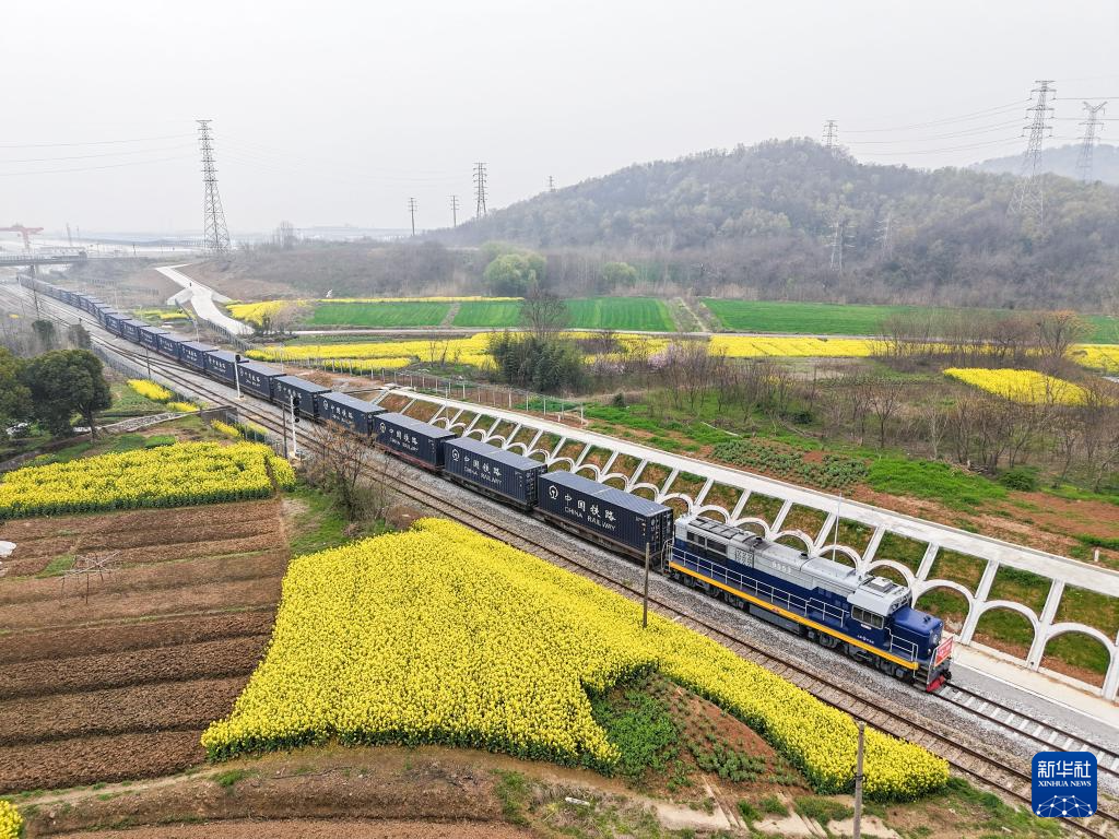 3月26日,首趟货运列车从上隍站货场驶出(无人机照片)。