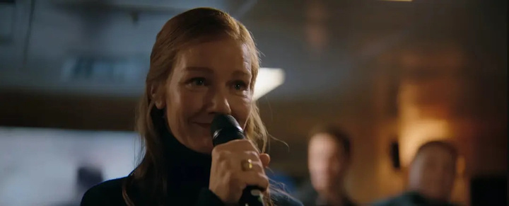 同样,桑德拉・惠勒饰演的指挥官理性冷峻,却偶尔流露出柔软与道德挣扎。飞船发射前,所有人都在“英雄即将牺牲”的前夜里狂欢时,她作为“送他们去死”的领袖,唱起《Sign of the Times》送别——她不是残酷无情,只是没有办法。