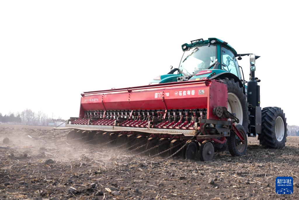 3月25日,播种机在位于黑龙江省哈尔滨市的北大荒集团闫家岗农场有限公司一处耕地上播撒小麦种子。
