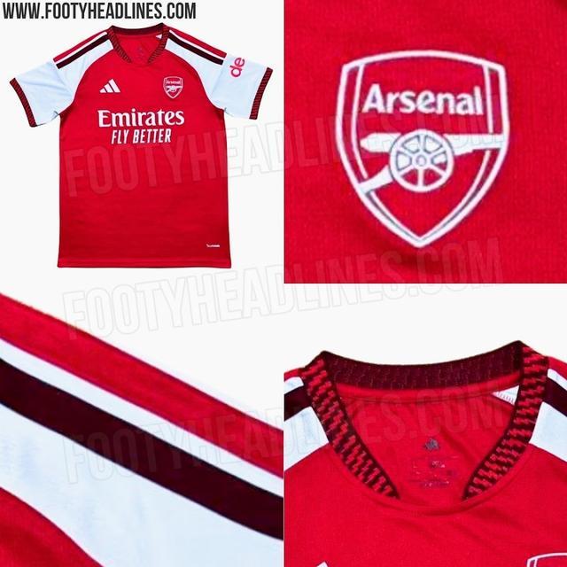 3月27日,足球装备网站Footyheadlines曝光了更多阿森纳队下赛季主场球衣的细节图。这款主场球衣以经典红色为主色调,搭配深酒红色的领口、袖口和肩部三条纹,同时加入了锯齿状闪电图案,带来视觉层次感和动感设计,让人不禁联想到俱乐部历史上的经典球衣风格。