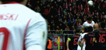 第15分钟,波兰队攻势,希萨伊门前头球解围