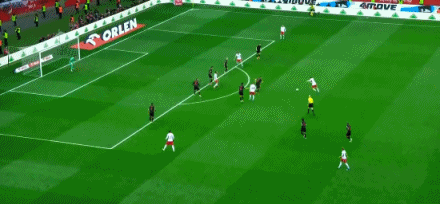 第63分钟,波兰角球机会,莱万后点头球破门,波兰1-1阿尔巴尼亚