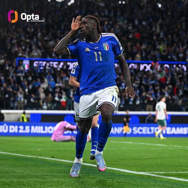 至此,莫伊塞-基恩最近5次代表意大利国家队出场都有进球。