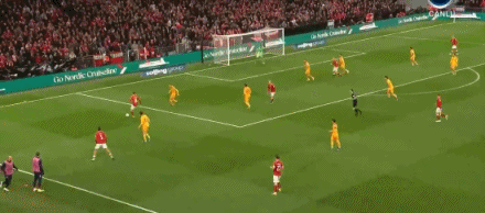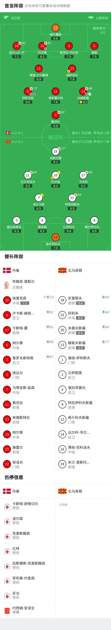 第75分钟,丹麦左侧角球,内尔高抢点破门,丹麦4-0北马其顿