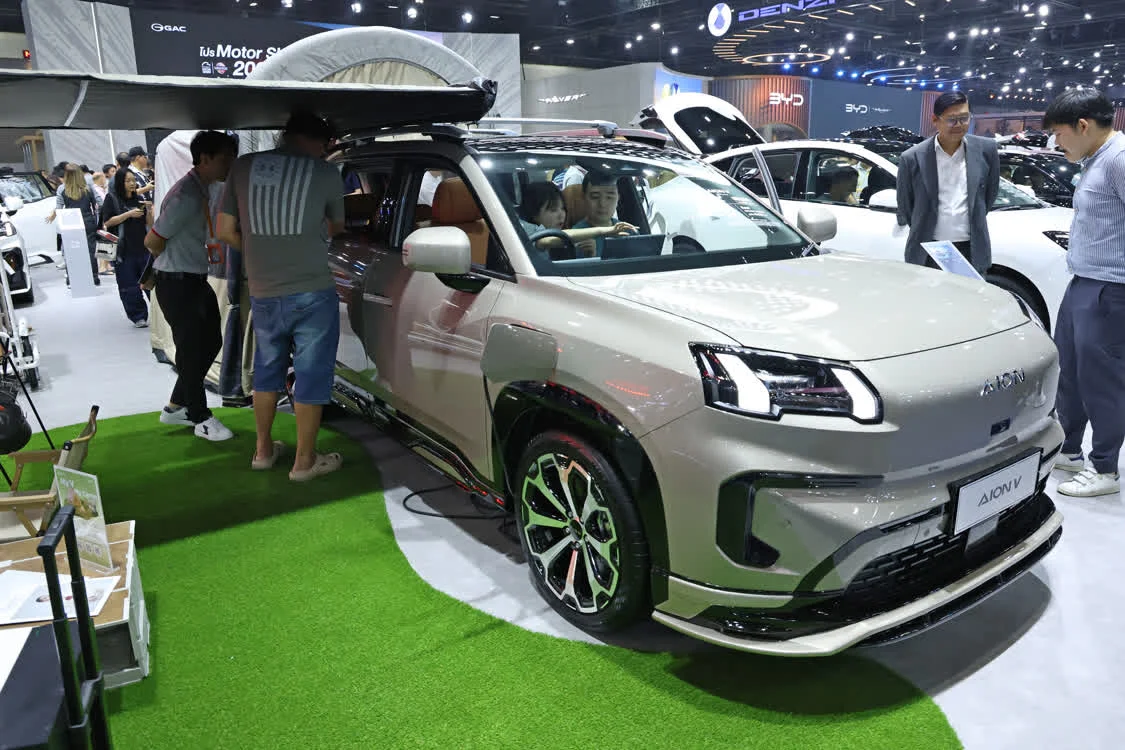 这是3月26日在泰国曼谷国际车展上拍摄的埃安V电动车。新华社记者 孙玮彤 摄
