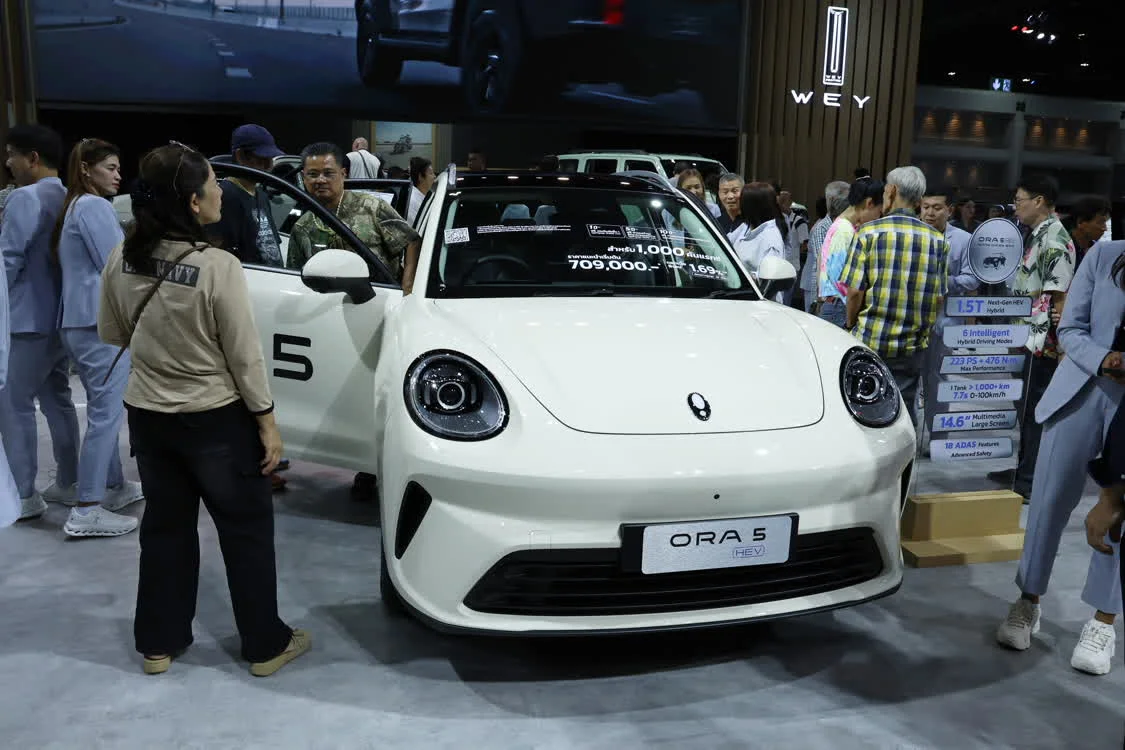 这是3月26日在泰国曼谷国际车展上拍摄的欧拉电动车。新华社记者 孙玮彤 摄