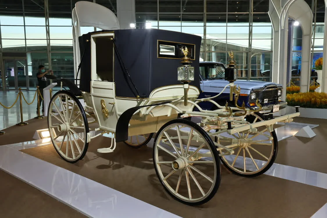 这是3月26日在泰国曼谷国际车展上拍摄的泰国王室马车。新华社记者 孙玮彤 摄
