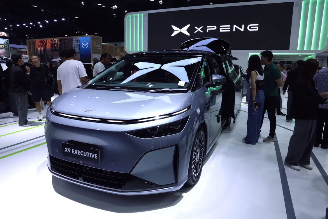 这是3月26日在泰国曼谷国际车展上拍摄的小鹏X9电动车。新华社记者 孙玮彤 摄