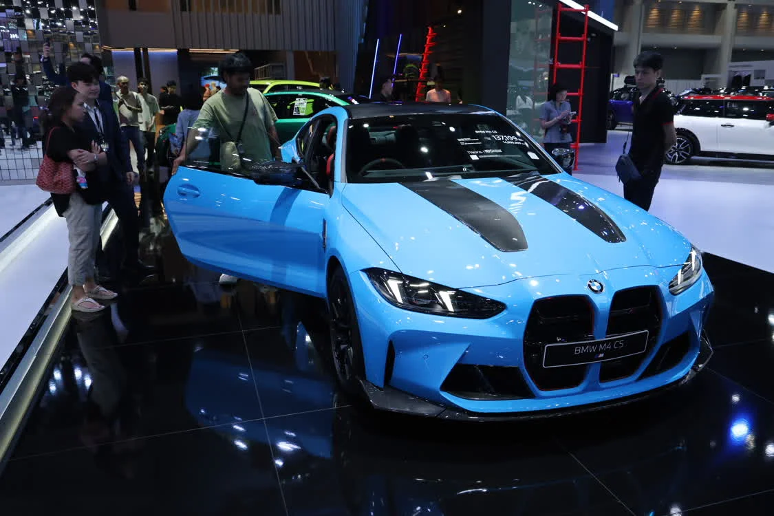这是3月26日在泰国曼谷国际车展上拍摄的宝马M4 CS跑车。新华社记者 孙玮彤 摄