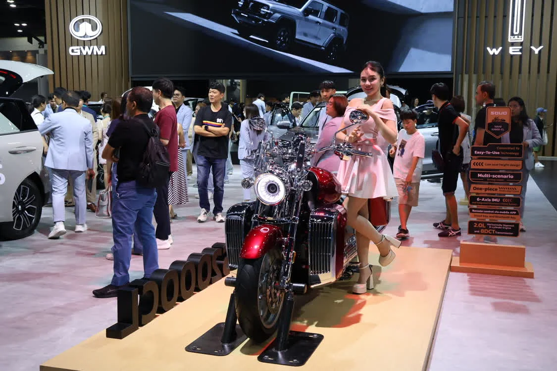 这是3月26日在泰国曼谷国际车展上拍摄的长城灵魂S2000CL摩托车。新华社记者 孙玮彤 摄