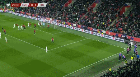 比赛第23分钟,捷克队遭遇重大打击——爱尔兰队的这次角球进攻开出后,曹法尔尝试头球解围,皮球却击中横梁打在科瓦日身上入网。门将科瓦日在这次防守中闪避不及送出一记乌龙球,使球队早早陷入0-2落后的被动局面。突如其来的打击一度让捷克队士气受挫。
