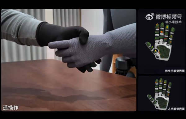 在应用层面,小米正通过仿真环境融合触觉信息,采用模仿学习与强化学习策略训练拟人化的抓握姿态,并已在实验室探索更多基于精细触觉的操作能力。