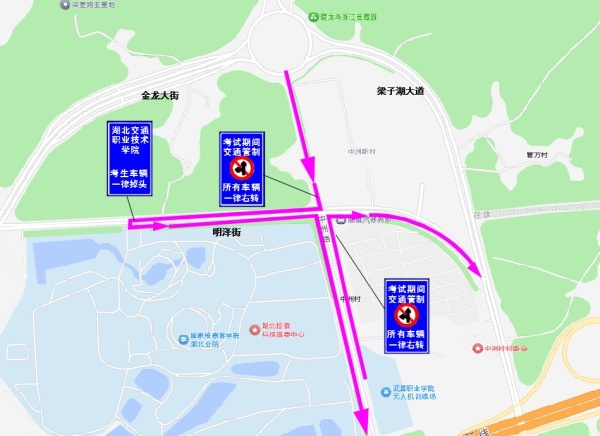 武汉东湖学院:考生车辆由文化大道东门、金樱街南门进入。