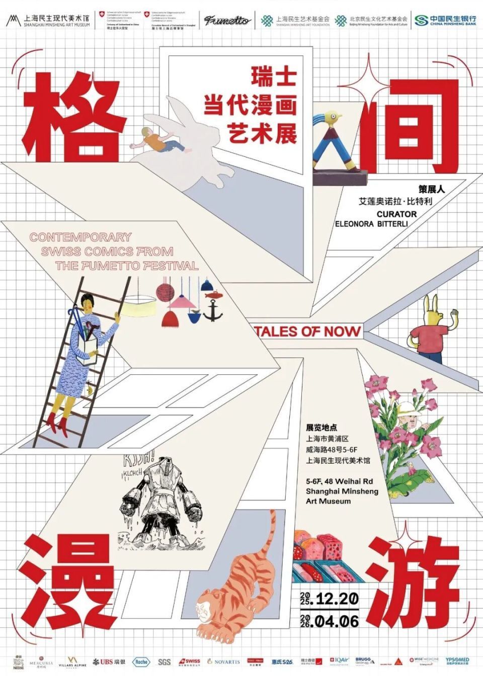 2025年12月20日,上海民生现代美术馆将推出漫画展览《格间漫游——瑞士当代漫画艺术展》。本次展览由艾莲奥诺拉·比特利(Eleonora Bitterli)策展,由上海民生现代美术馆与瑞士驻华大使馆及琉森国际漫画节(FUMETTO COMIC FESTIVAL LUZERN) 共同主办。