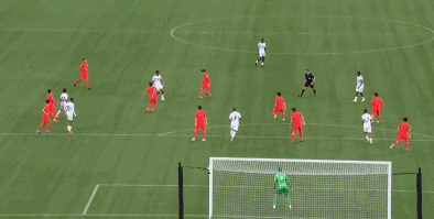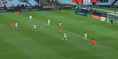 第40分钟,国足前场逼抢断球,王上源远射打高