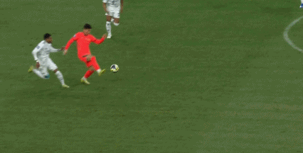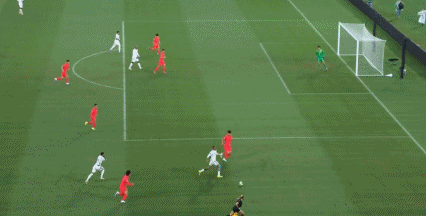 第36分钟,张玉宁强硬推进后分边,队友没拿到