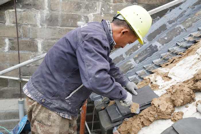 1993年,吴长红拜资深瓦工孔宪海为师,正式踏入古建瓦作领域。30多年来,吴长红扎根施工现场,在实践中打磨技艺,熟练掌握古建筑基础放线、台基砌垒、各类墙体砌筑、手工砍制砖料等全套瓦作技艺,深谙清水墙砌筑、异形砖砍制、屋面施工等核心难点。