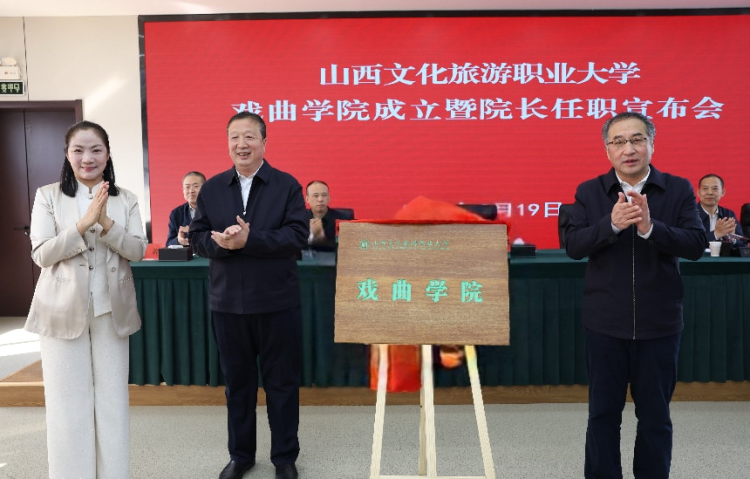 新黄河客户端获悉,近日,山西文化旅游职业大学戏曲学院成立暨院长任职宣布会在唐槐校区举行。校党委书记弓永华、校长孙岩为学院揭牌并颁授印章,全国政协委员、二级教授、国家级非遗代表性传承人苗洁就任首任院长。戏曲学院的成立,标志着山西戏曲人才培养正式迈入职业本科层次专业化发展新阶段,为三晋戏曲文化传承创新注入新活力。