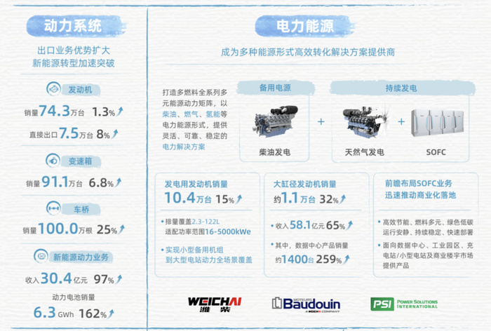 值得关注的是,潍柴动力精准锚定全球AI算力爆发催生的能源需求变革机遇,依托柴油发动机、天然气发动机、SOFC等多元化产品矩阵,深度卡位电力能源高景气赛道,企业第二增长曲线加速成型,成为本次年报的最大看点。