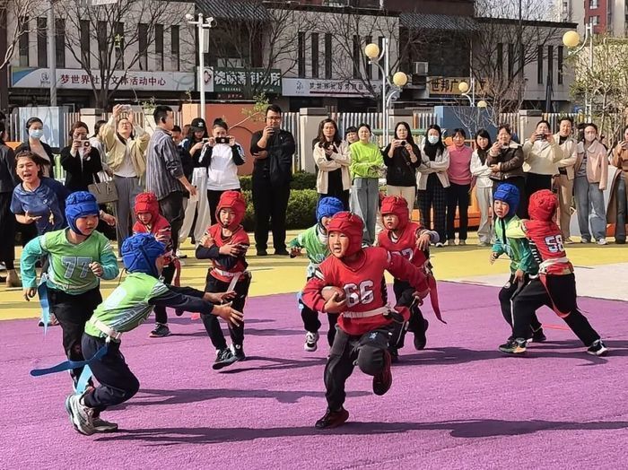 活动伊始,参会人员实地观摩了梦世界园的户外体育活动。该园在6600余平方米的园区空间中,打造了3600平方米的专属户外游戏场地,划分11个特色运动区域,配备跑酷、攀爬梯等多元器械,覆盖攀爬、跳跃、平衡等多种运动类型。通过班级“AB”化、玩法自主化、游戏混龄化的创新模式,园所盘活场地与器械资源,让幼儿成为运动的主角。观摩现场,孩子们在腰旗橄榄球、幼儿跑酷、传统民间游戏等趣味活动中尽情奔跑、协作互动,展现出勇敢自信、积极向上的精神面貌。