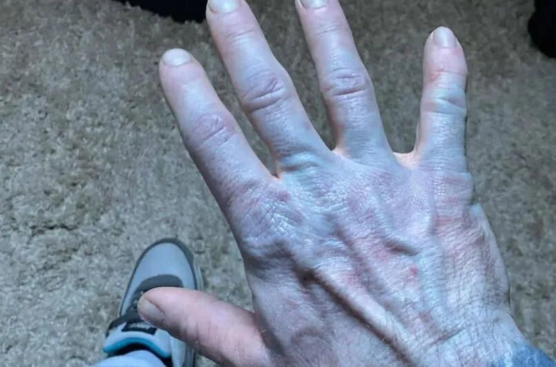 第一晚一切正常。第二天白天,Tommy和一个人握手时注意到自己的手有点蓝,但他压根没往床单那方面想,只是觉得自己大概手太冷了,血液循环不好。