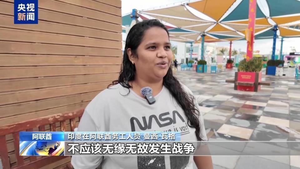 印度在阿联酋务工人员 曼西·瓦格:不应该无缘无故发生战争,我认为团结和和平才是最好的选择。