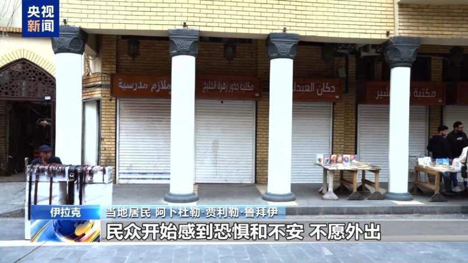 当地居民 阿卜杜勒·贾利勒·鲁拜伊:民众不知道这场战争何时会结束。特别是近期美以针对伊拉克北部安巴尔和基尔库克两省边境的空袭,这些都影响到了我们。民众开始感到恐惧和不安,不愿外出。