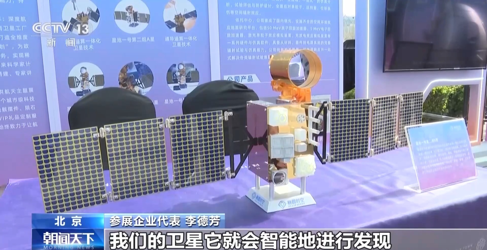 参展企业代表 李德芳:通信信号不能到达的地区,我们的卫星它会智能地进行发现,能够实现厘米级的导航定位,来让它能更快更好地到达现场。