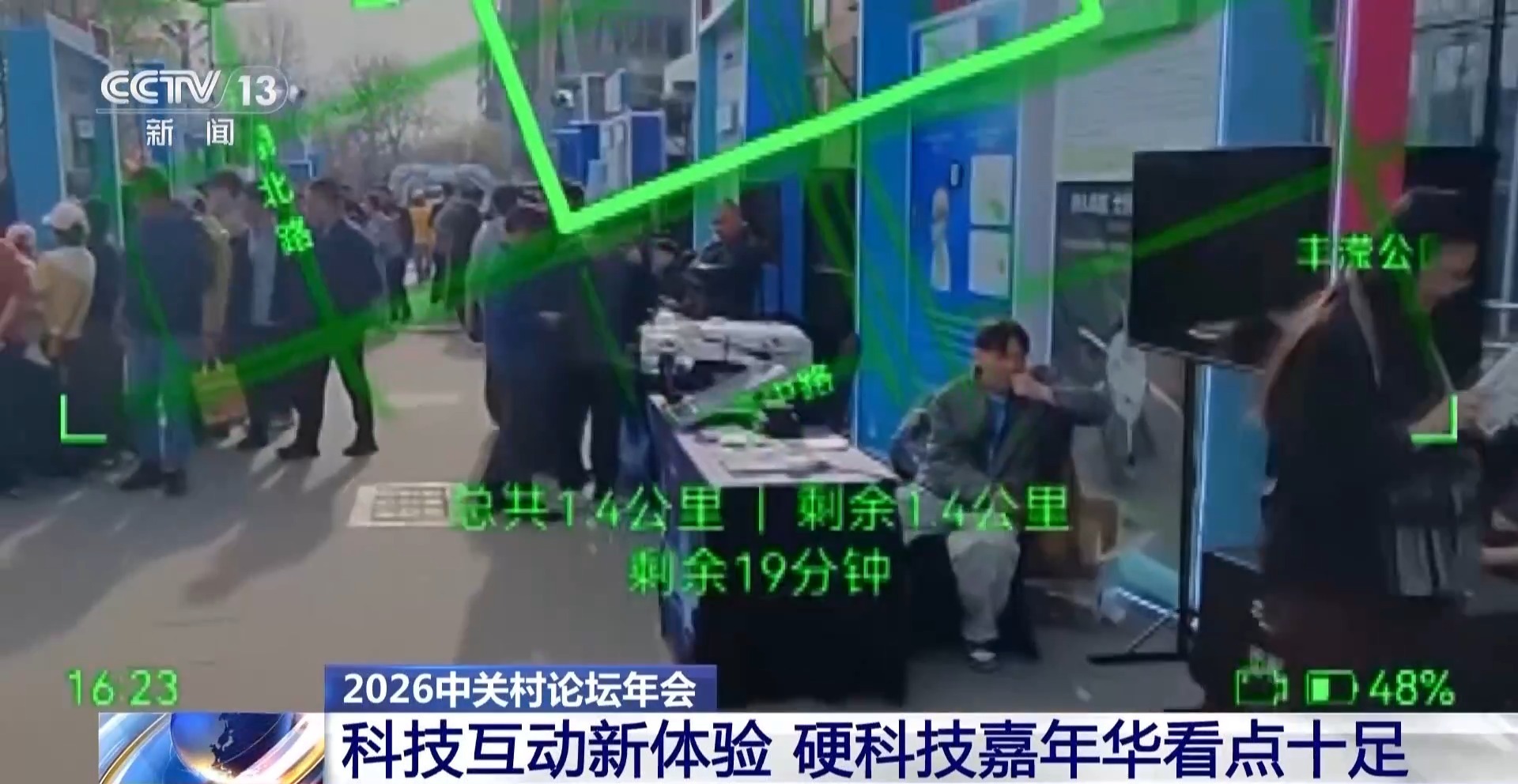 总台记者 马欣欣:在硬科技嘉年华的现场,我发现了一款会“成像”的AI眼镜。这个眼镜很轻,它和普通的眼镜其实没有什么区别。当戴上它之后,面前就能够看到它所呈现的内容,比如说导航所走的路线。同时还可以实时翻译,实现“所见即所得”的交互体验。