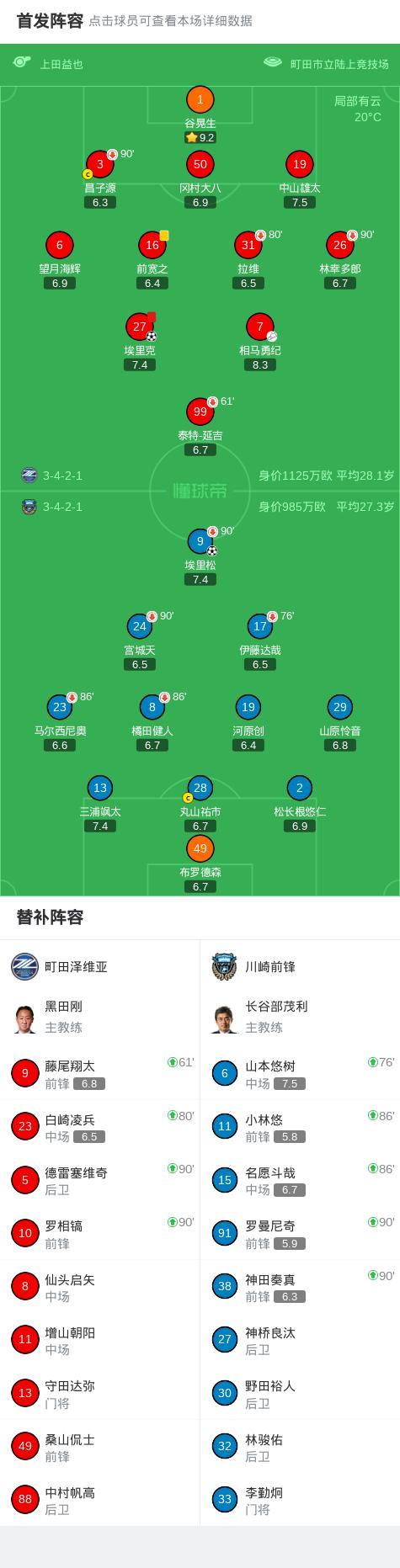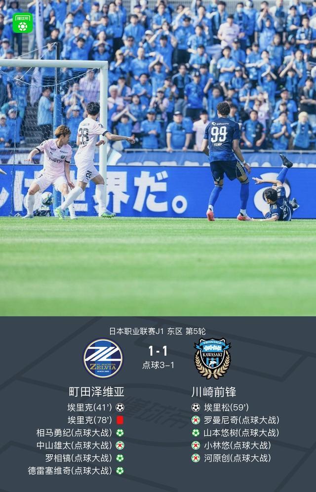 北京时间3月28日日本职业联赛J1东区第5轮,町田泽维亚主场对阵川崎前锋。町田泽维亚埃里克破门。川崎前锋埃里松破门。最终比分町田泽维亚 4-2 川崎前锋。