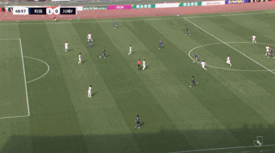 第40分钟,相马勇纪助攻,埃里克进球,町田泽维亚1-0川崎前锋