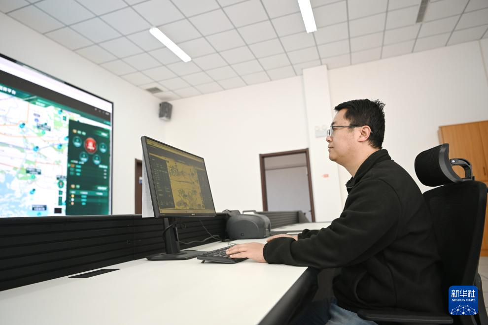 在雄安新区“千年秀林”雄中片区管护调度室,工作人员通过智慧林草综合管护平台进行工作调度(3月19日摄)。智慧林草综合管护平台将视频监控、人员定位、问题上报等功能融为一体,实时更新护林员轨迹、林区异常情况,实现森林管护数字化、智能化。