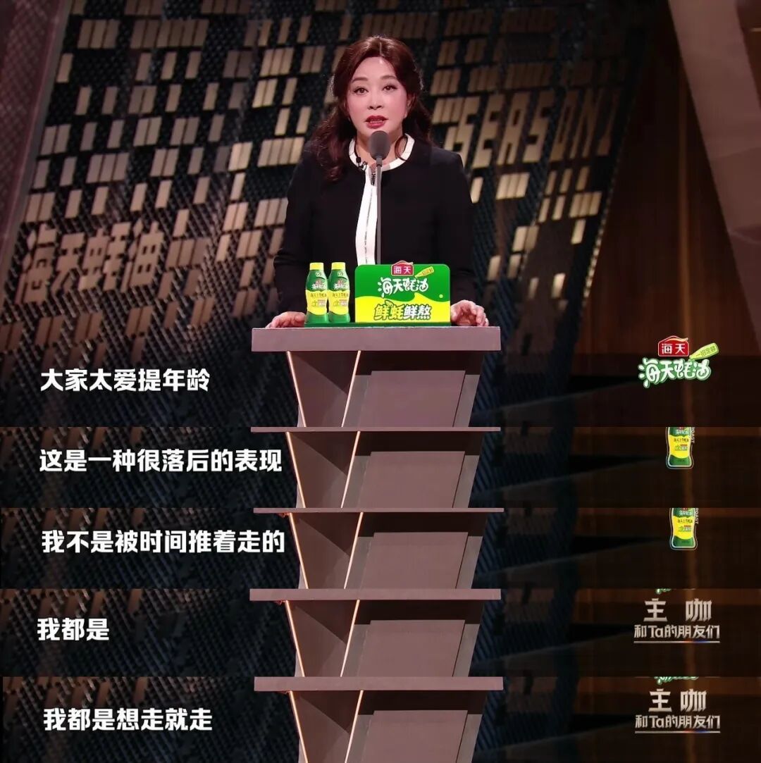 晓庆姐演丫头总是被群嘲,她却说“大家太爱提年龄,是一种特别落后的表现。我不是被时间推着走的,我是想走就走”。鸟鸟盼望有一天女艺人上台能放心展露自己的弱点,并且可以被包容。倪萍拿出了经典的煽情口吻,却是寄语观众“年轻人要是觉得累了走不动了就躺下歇会儿,古人不是说了吗,退后一步是向前。”