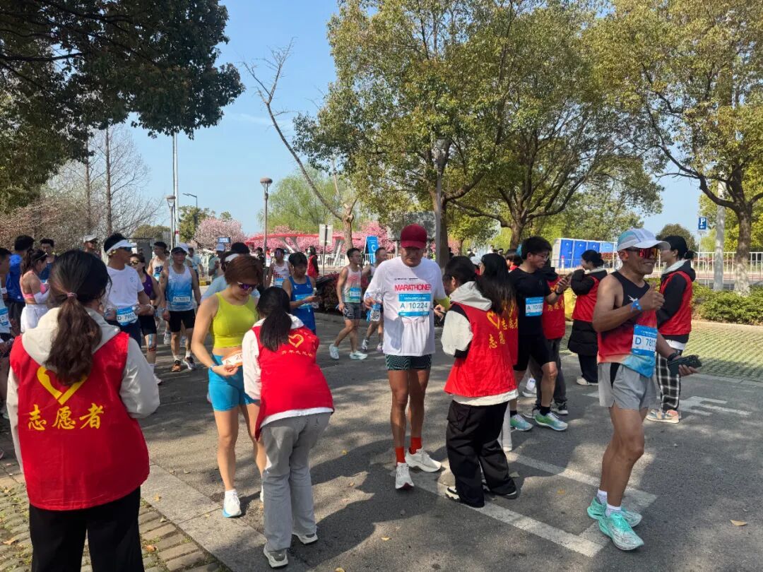 1150名“小青新”志愿者提前两天集结分装,将5000份参赛包码得整整齐齐。开赛一早,他们迅速分散在赛场20个区域,从存包、检录到赛道引导、补给分发、完赛物资发放,每个环节都有他们忙碌的身影。107名小组长带着各自的小分队,把每个环节安排得明明白白,确保服务不掉链。