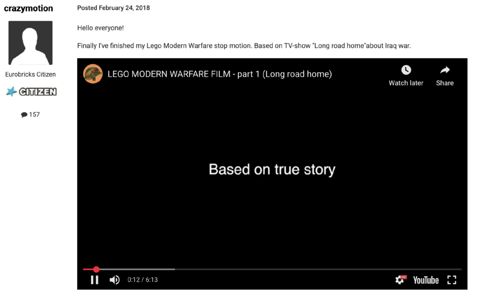 但事实上,早在美伊乐高大战开始之前,就有很多人用它整战争叙事了。