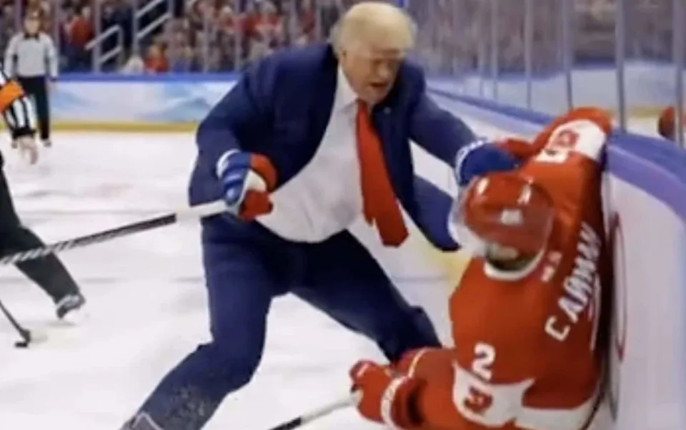 冬奥会期间,他做了个自己暴打加拿大冰球运动员的视频...