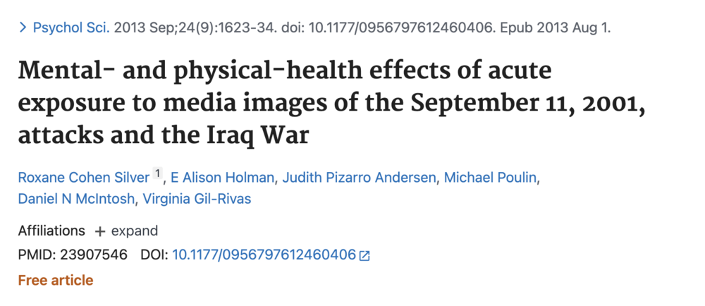研究证明,每天看4小时以上与9/11事件相关的电视节目,可能会让人在2-3年后更容易出现健康问题。