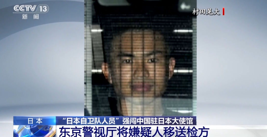 据央视新闻此前报道,日本东京警视厅26日表示,以涉嫌非法侵入建筑物为由,将强行闯入中国驻日本大使馆的陆上自卫队嫌疑人、三等陆尉村田晃大送交检方。