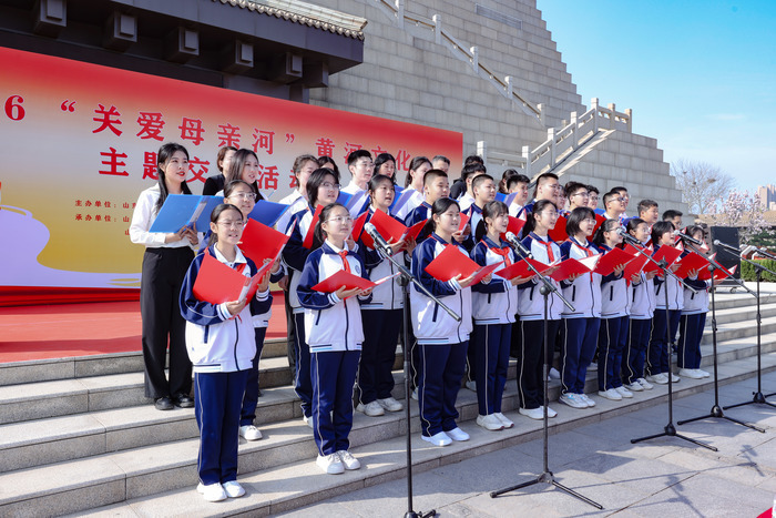 开幕式上,一场饱含深情的黄河文化经典诵读点燃现场氛围。来自省文旅厅、山东黄河河务局的干部职工与来自济南市瑞景中学的20名中学生携手登台,诵读黄河主题经典诗词与散文,铿锵有力的声音传递出对母亲河的崇敬与热爱,展现出黄河文化跨越古今的精神力量。